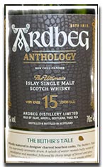 Ardbeg Anthology The Beithir's Tale, 15 YO, OB, 46% B:2025.  Price:   Colour: Gold Nose: Smoky, peaty, maritime, oaky, on toasted wood, dry peat smoke, some seabrine, iodine and phenols. Taste: Thin, maritime, salty, on seaweeds, iodine, camphor, sea salt, burnt wood, some old ashes and eucalyptus. The finish is medium, rather thin, very maritime, smoky, on sea brine, lemon juice, seaweeds, burnt wood, and camphor. Diluted, it becomes more on gentian and aromatic roots. Impression: A light Ardbeg, rather thin, bitter and on burnt wood. Seems like a diluted Ardbeg. Disappointing. Made with air-dried casks. Rating: 11/20  |