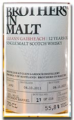 Gleann Gaibheach (Glen Garioch) 2011, Brothers in Malt, 55,8 %, B:2024 fût 2692. Prix: |