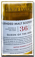 Queen of the Hebrides blended malt, House of Hazelwood, 43.4%, B:2025. Price: Colour: Pale gold Nose: Mellow, with a very complex peat smoke, on iodine, seaweeds, light medicinal flavours, some hemp rope and tar. Elegant and rather intense. Taste: Complex to very complex, salty, on citrus (grapefruits), nice exotic fruits (slightly sour and citric), with a lovely maritime peat smoke, some iodine, seaweeds, camphor, peach and lychees. The finish is long, complex, smoky, maritime, citric, on pink grapefruits, some peach, exotic fruits and a nice mellow maritime peat smoke, rather medicinal, on iodine and some bandages. Diluted, it becomes slightly on almonds and more on lemon. Impression: A blend of Islay single malts, creating an excellent combination of exotic fruits, citric and maritime and medicinal peat smoke. Very good, With slightly more intensity, the rating would have been even higher. Rating: 17/20 |
