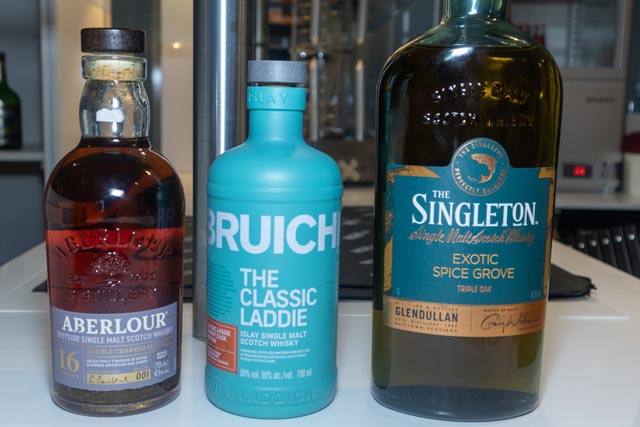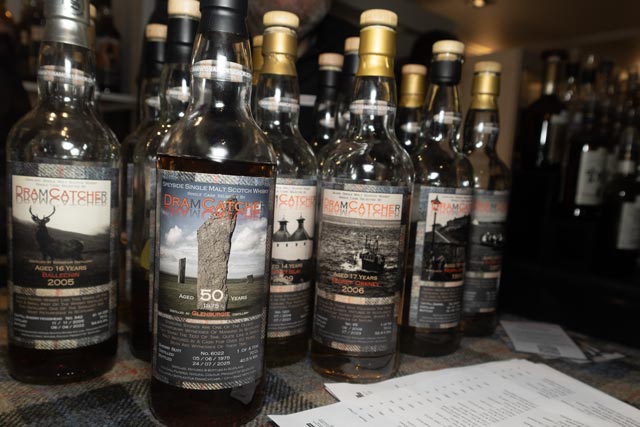 Il était temps de se rendre chez Dramcatcher pour déguster leur nouveau Glenburgie 50 ans d'âge. Ce whisky à l'ancienne, rond et moelleux, est légèrement aromatique, avec une légère fumée tourbée aromatique, des notes d'orange, d'herbes aromatiques, de raisins secs et d'oranges confites. Très bon, avec une belle intensité aromatique. J'aurais juste aimé une finale plus longue. Provenant de Cask Masters, le Caol Ila Château Chizay est élevé en fût de vin ukrainien de premier remplissage. Ce whisky était très tourbé, intense, médicinal, avec des notes de corde de chanvre, évoluant vers des arômes de bacon fumé, ainsi que des notes de raisin doux et de vin avec le temps. L'Ardbeg Riversaltes La barrique était agréablement maritime, tourbée, légèrement phénolique, avec de douces saveurs vineuses. Moins tourbée, mais plus subtile que le Caol Ila.
