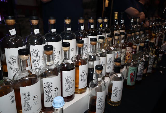 | Quelques uns des embouteillages de The Whisky Agency, avec plein de belles bouteilles collector sur la gauche de l'image |