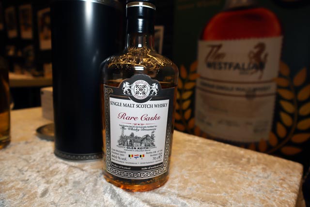 | Chez Malts of Scotland,des embouteillages du trio de Whisky Dreamers, tels que le Glen Keith étaient disponibles. |