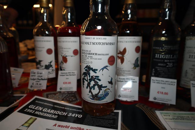 Je me suis ensuite rendu chez Malts of Scotland pour déguster les différents produits de Whisky Dreamers, un trio de passionnés de whisky belges et néerlandais qui sélectionnent des fûts pour leur marque. J’ai commencé par leur BenRiach 1996, un BenRiach charmant, riche et complexe, avec beaucoup de fruits jaunes, notamment de la mirabelle et une touche de miel au nez, intense et riche en bouche. Un très bon whisky, mais pour l'apprécier à son plein potentiel, laissez-lui le temps de respirer. Le Glen Keith 1993 était encore plus fruité, avec davantage de fruits jaunes et de fruits mûrs du verger, après une attaque initiale légèrement aromatique. Un whisky dangereusement facile à boire, plus expressif bien que légèrement moins complexe que le BenRiach. Très bon. J'ai dégusté le Glendronach 1994, le choix personnel de Frank, l'un des trois fondateurs de Whisky Dreamers, un whisky au nez très complexe, sur des notes d'épices, de fleurs, de cacao, de cuir, de baies noires (beaucoup de mûres et quelques cerises noires) et un profil gustatif similaire en bouche, avec une longue et riche texture. Excellent. Le Glen Garioch Rare Cask 1990 de Malts of Scotland était très aromatique, légèrement austère, avec des notes de gingembre confit et une belle complexité.