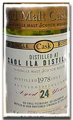 Caol Ila 1978 Old Malt Cask, 24 YO, Douglas Laing, 50%, B:2003, 300 bottles. Price: Colour: Old gold Nose: Smooth, elegant, peaty, maritime, with an elegant maritime and rather medicinal peat smoke, iodine, seaweeds, some soot, tar and a fair amount of disinfectant. Taste: Maritime, rather complex and subtle, peaty, smoky, maritime, medicinal, on disinfectant, medicinal peat smoke, some candied pink grapefruits, iodine, seaweeds, tar, hemp rope, vanilla and a touch of exotic fruity flavours. The finish is long, medicinal, maritime, smoky, peaty, slightly citric, with a nice light and elegant maritime and medicinal peat smoke. Impression: A very good Caol Ila, with a lovely maritime peat smoke. Not a peat bomb, but with a nice elegant, smooth and complex peat smoke, mixed with some tar, disinfectant and seaweeds. Thank you Boris. Rating: 16/20 |