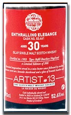 Caol Ila Artist 30 YO 53.461, 1993, Scotch Malt Whisk Society, 52.4%, B:2023. Price: Colour: Pale gold Nose: Very smoky, maritime, peaty, salty, rather medicinal, on sea brine, seaweeds, light mineral flavours, a nice mellow and rather complex maritime peat smoke, some TCP, hemp rope, tar and kipper. Very good, Taste: Maritime, smoky, peaty, medicinal, salty, on maritime peat smoke, iodine, seaweeds, TCP, tar, hemp rope, kippers and disinfectant. The finish is long, maritime, smoky, medicinal, peaty, tarry and on citrus. Complex. Some spearmint at the end. Impression: An excellent, complex and rather mellow Caol Ila, with lots of peat smoke and medicinal flavours, as well as a fair dose of maritime flavours. With a long smoky retro-olfaction. Rating: 17/20 |
