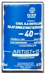 Caol Ila 1983 Artist 15, 40 YO, Elixir distillers for LMDW, 51.3%, B:2025. Price: Colour: Pale gold Nose: With a very elegant and mellow peat smoke, rather maritime and medicinal, on iodine, disinfectant, TCP, bandages, some sea weeds and seabrine. Most pleasant. Taste: Light, mellow, maritime, very medicinal, on ripe citrus, sea brine, iodine, maritime and medicinal peat smoke, some bandages, disinfectant, candied lemon, a touch of spearmint and hemp rope. The finish is long, mellow, slightly thin, citric, smoky, and moderately peaty, with some candied lemon, nice medicinal and maritime flavours, as well as an elegant and subtle peat smoke. Impression: A very old Caol Ila, mellow, elegant and medicinal. As expected by ap peated whisky of such a venerable age, the peaty flavours are rather mild. Very good, but slightly thin, otherwise the rating would have been probably higher. Better to taste on a fresh palate. Rating: 17/20 |